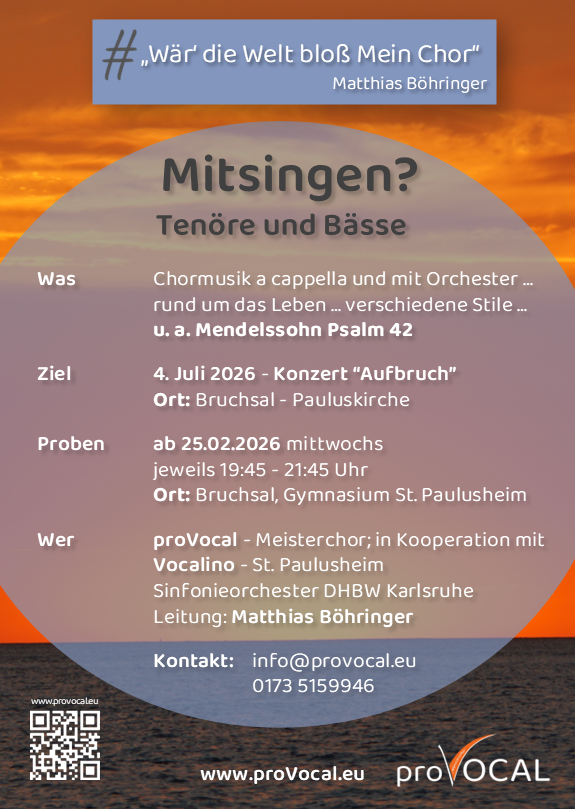Kontakt: info@proVocal.eu oder chorleiter@provocal.eu